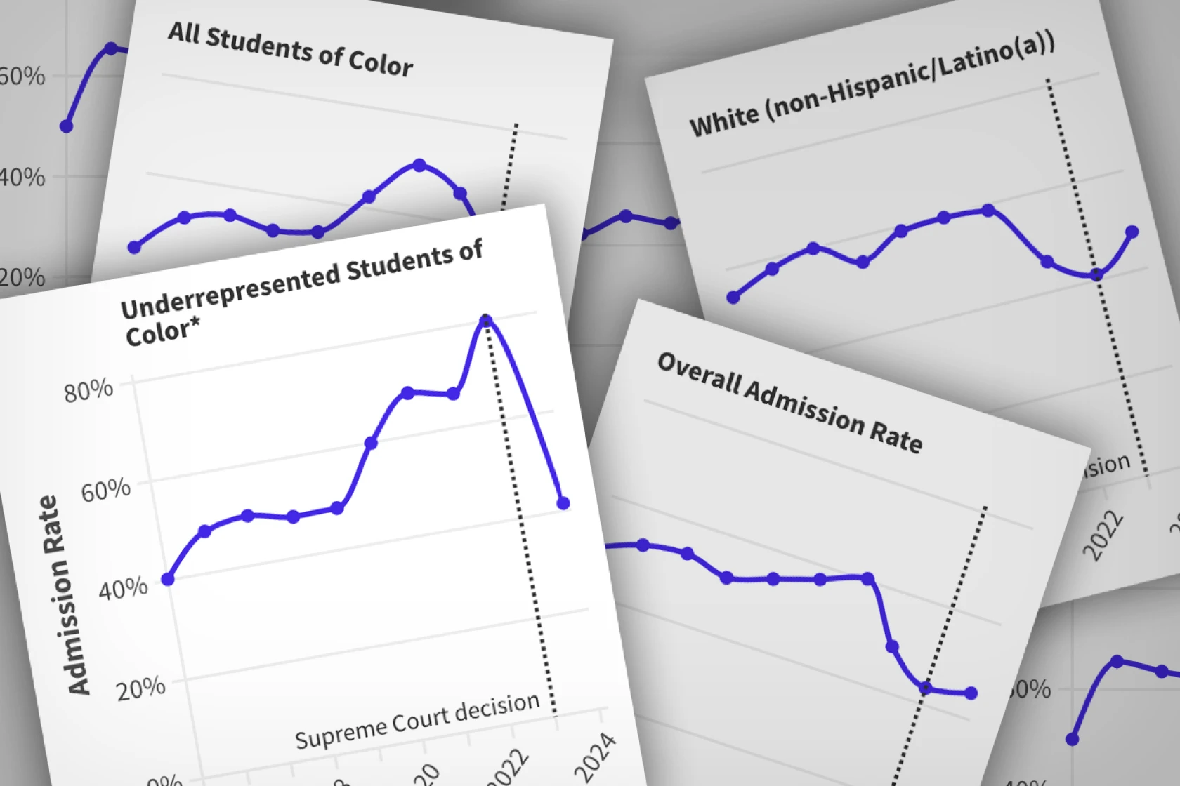 Admission rates for Hispanic or Latino/a students and African American students each fell by roughly 17 percentage points, while the number of applicants from both groups increased by several hundred. For white students, the admission rate went up to 48 percent from 41 percent. The admission rate for Asian American students increased only marginally, to 52 percent from 51 percent.